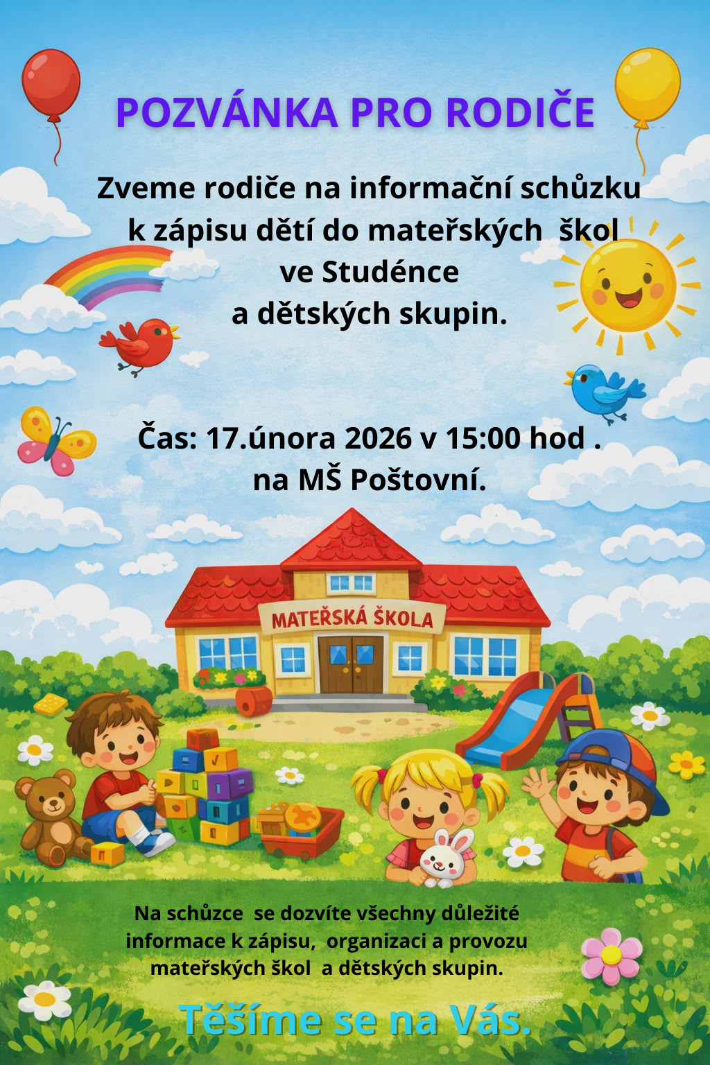 - Odhlášení a přihlášení stravy dítěte/dětí je možné nahlásit na email: nova.horka@msstudenka.cz nejpozději do 09:00 hod. předchozího dne